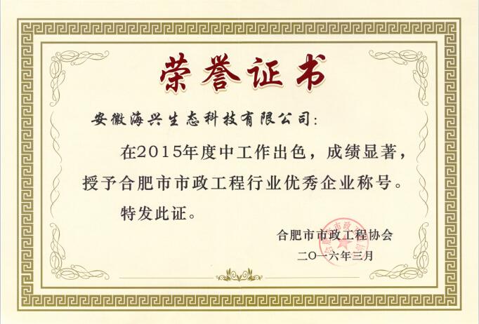 從合肥市市政工程協會召開的第三屆三次理事大會上獲悉,我公司榮獲兩項榮譽,一是企業獲得2015年度合肥市市政工程“優秀企業”稱號,二是我司王東華同志獲得“優秀項目經理”稱號。