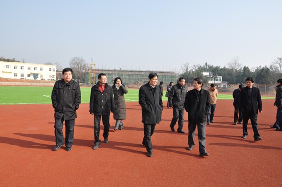 12月23日上午,蕪湖市委常委、組織部長胡邦明在南陵縣委書記、縣人大常委會主任鳳劍峰,縣委常委、組織部長夏冰馨,家發鎮黨委書記劉敏等同志的陪同下到南陵縣家發中學檢查工作,并視察了由我公司承建的家發中學運動場工程。