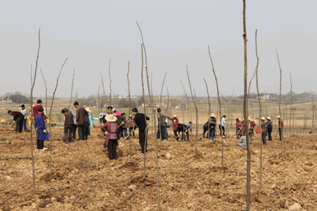 不一會(huì),我們來到一片正在栽樹的土地,看到工人在勤勤懇懇的栽樹,運(yùn)樹苗、挖坑、放樹苗、培土,有條不紊。隨著施總一聲安排,我們也去體驗(yàn)栽樹的樂趣,栽下三五棵,我們就汗流浹背,手腳發(fā)酸,哎,栽樹累,栽樹苦,深深諳知這浩大的園區(qū),花木成行,披紅戴綠,生機(jī)勃勃,來之不易啊!對(duì)勞動(dòng)人民的敬仰之心,從腳下涌向心頭。