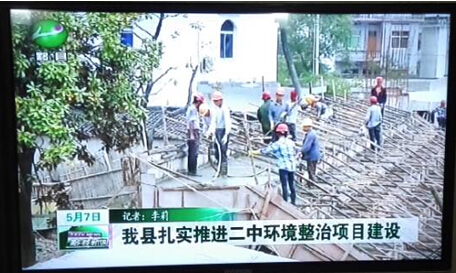 近日黟縣電視臺在“我縣扎實推進二中環境整治項目建設”報道中,大篇幅的報道了,我公司承建的黟縣二中主席臺及運動場地改造工程,并配發了相關現場施工圖片,圖片中安全防護到位,現場材料分類堆放整齊,施工組織井然有序,大家干勁十足。
