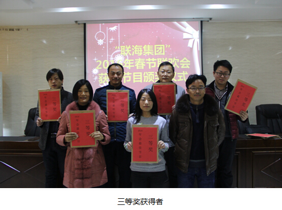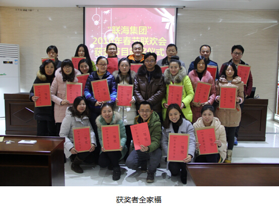 晚會后,公司組織了全體員工進行“聯海集團”春節聯歡會優秀節目的評選活動,除參加表演的演員外,其他員工全部進行了投票,由企業發展部唱票并公布了最終的評選結果。本次共評出一等獎1名,二等獎2名,三等獎3名,頒獎儀式于2016年1月23日上午10時,在公司的第一會議室舉行,由項目管理公司總經理張安斌先生為各位獲獎者頒發了獎狀和獎金。