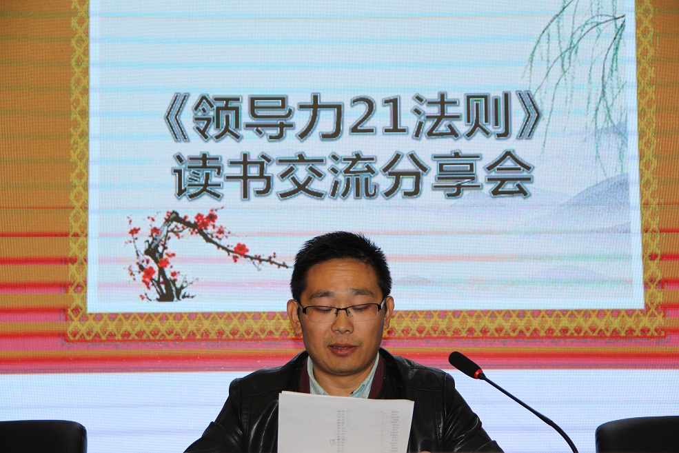 2017年10月14日下午,在集團(tuán)總部五樓培訓(xùn)中心,由集團(tuán)發(fā)展戰(zhàn)略中心人才資源部組織了一場(chǎng)大型的讀書(shū)分享活動(dòng)---《領(lǐng)導(dǎo)力21法則》讀書(shū)交流分享會(huì),《領(lǐng)導(dǎo)力21法則》是全球第一領(lǐng)導(dǎo)力大師---麥克斯維爾博士40年研究的集大成之作。書(shū)中每一條法則都有相應(yīng)的事例進(jìn)行闡述,通熟易懂,吸引了公司全員都進(jìn)行了研讀。