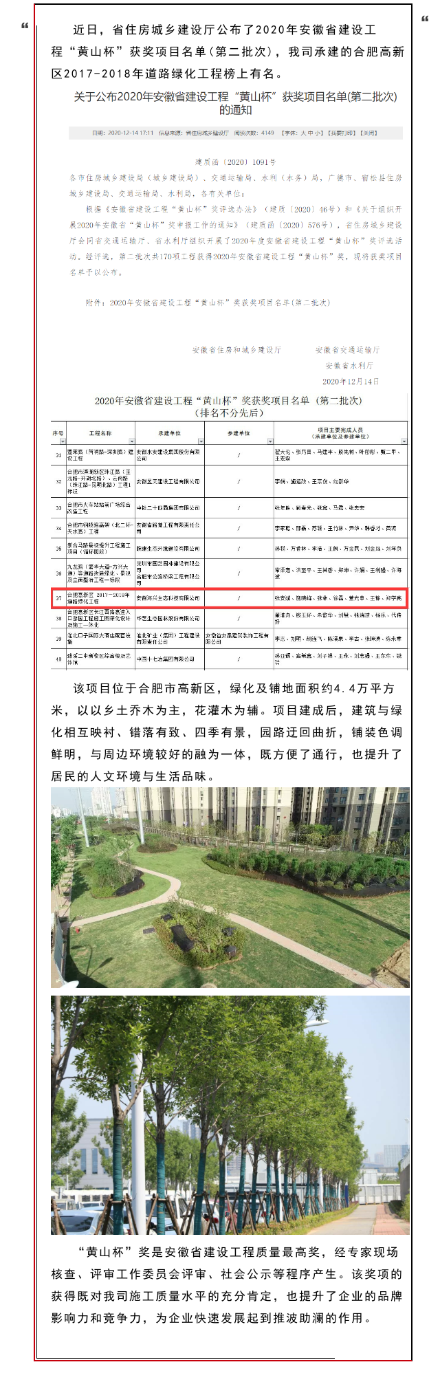 賀我司榮獲安徽省建設工程“黃山杯”獎