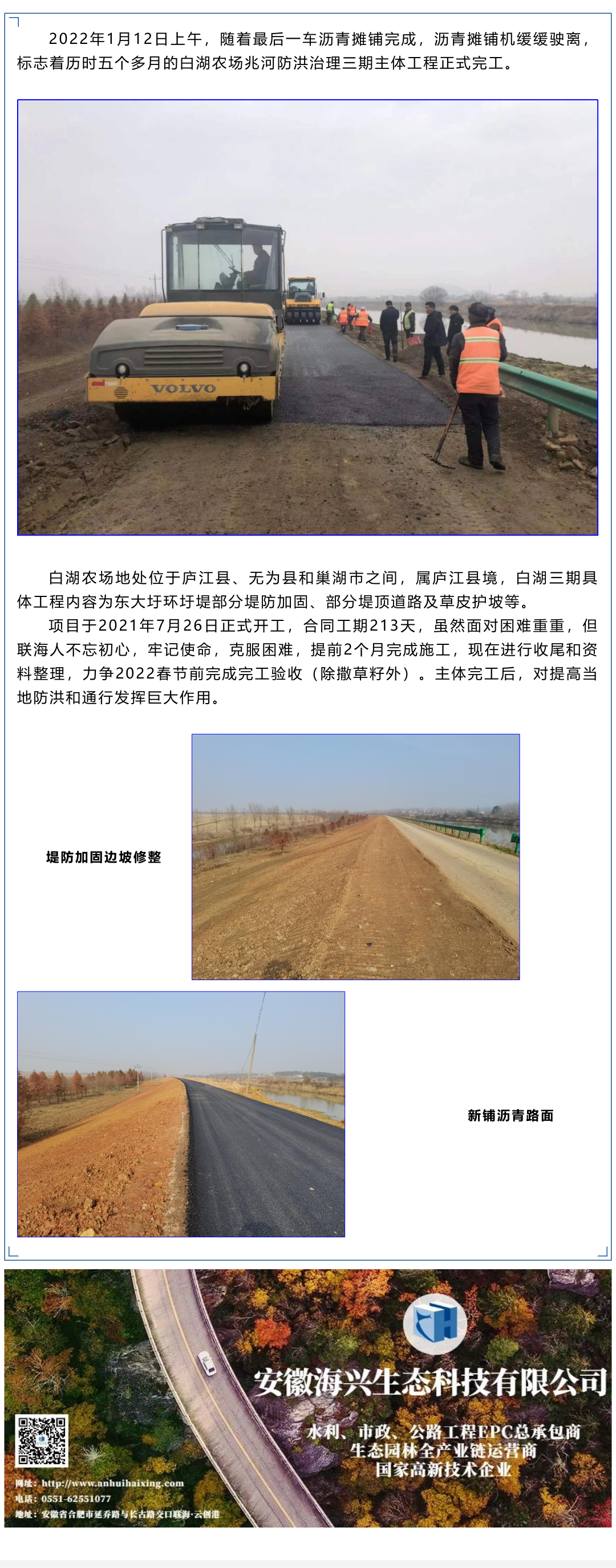 廬江縣白湖農場兆河防洪治理工程3期主體工程順利結束