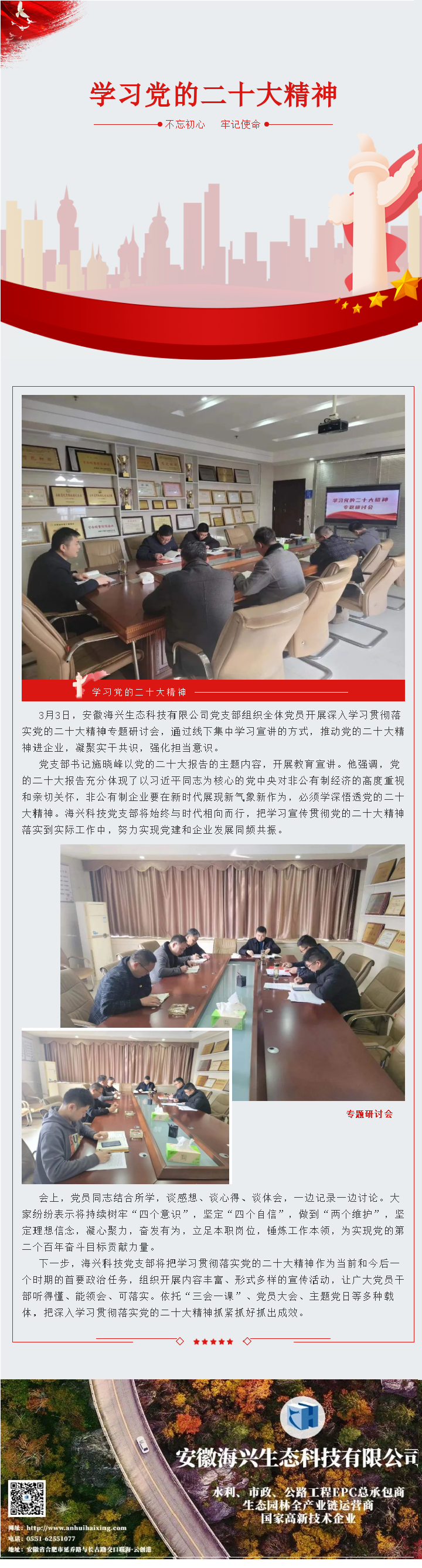 安徽海興生態科技有限公司黨支部集體學習黨的二十大精神