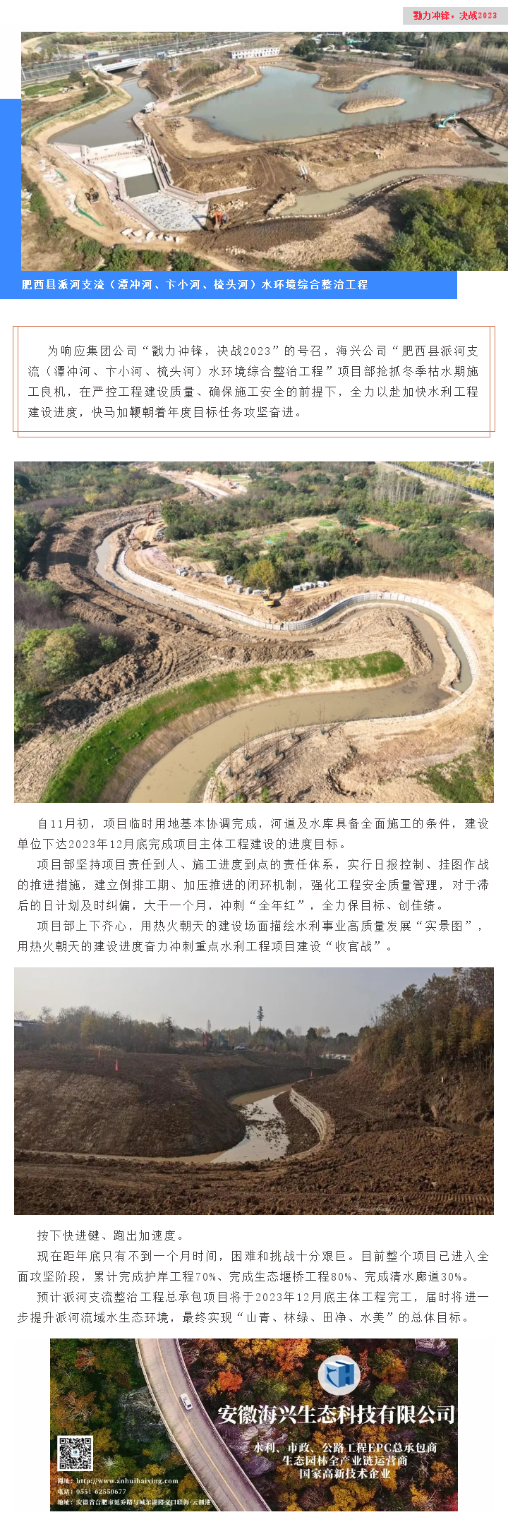 肥西縣派河支流水環(huán)境綜合整治工程攻堅奮進,沖刺“全年紅”